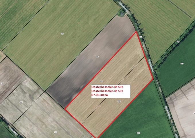 De kadastrale percelen Oosterhesselen M 592 en Oosterhesselen M 593 zijn belast met een zakelijk recht als bedoeld in het voormalige artikel 5, lid 3, onder b, van Belemmeringenwet Privaatrecht ten behoeve van TenneT TSO B.V.