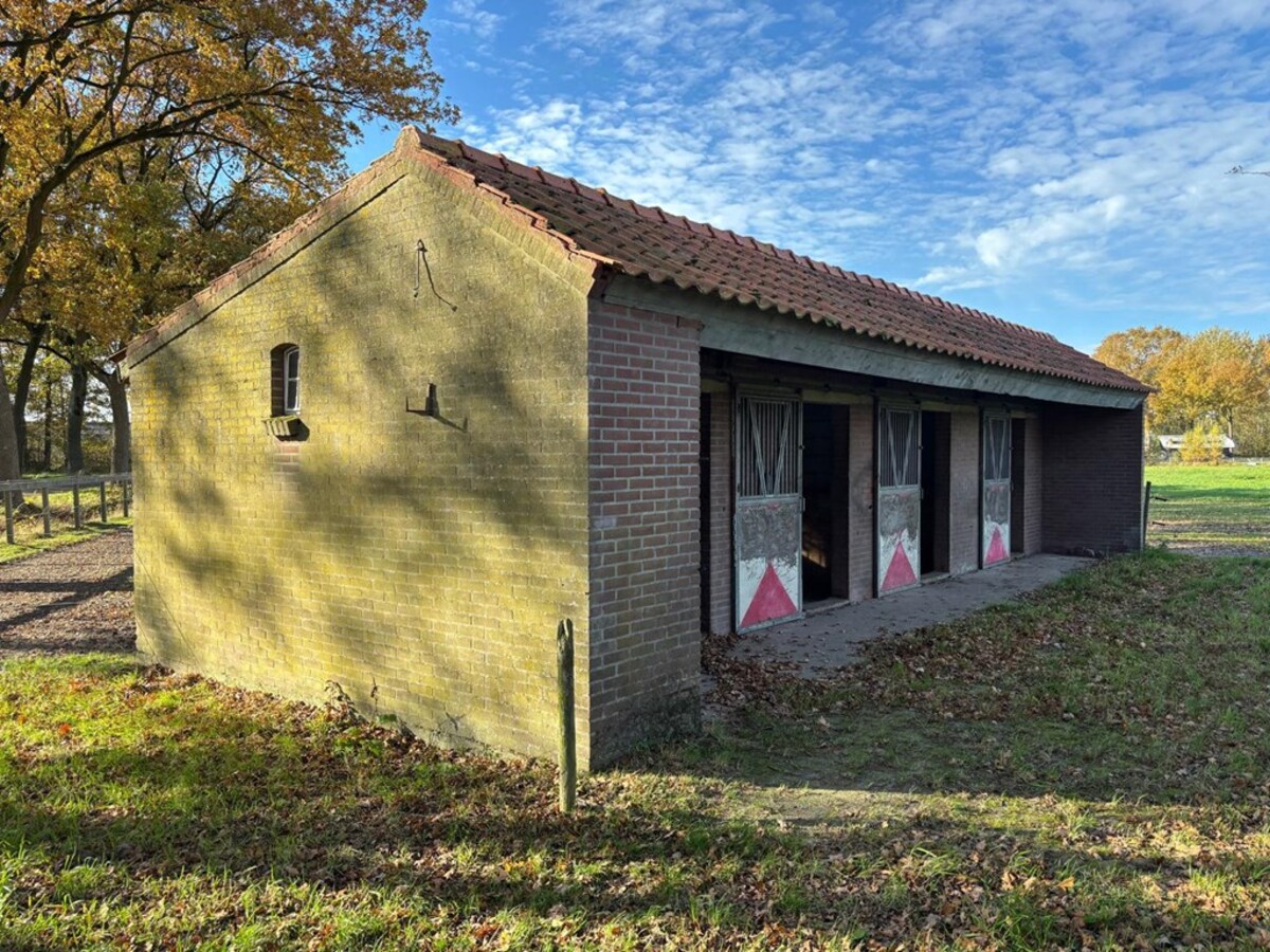 De paardenstal met een oppervlakte van circa 40 m² is grotendeels in spouw gemetseld, voorzien van 3 paardenboxen en zadelkamer. De vloer is van beton en het dak is gedekt met pannen. Tevens is de paardenstal voorzien van een eigen elektriciteitsaansluiting en huisnummer.