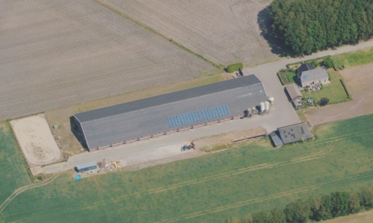 Op de kap van de stal bevinden zich 180 zonnepanelen (2013 en 2023) met een