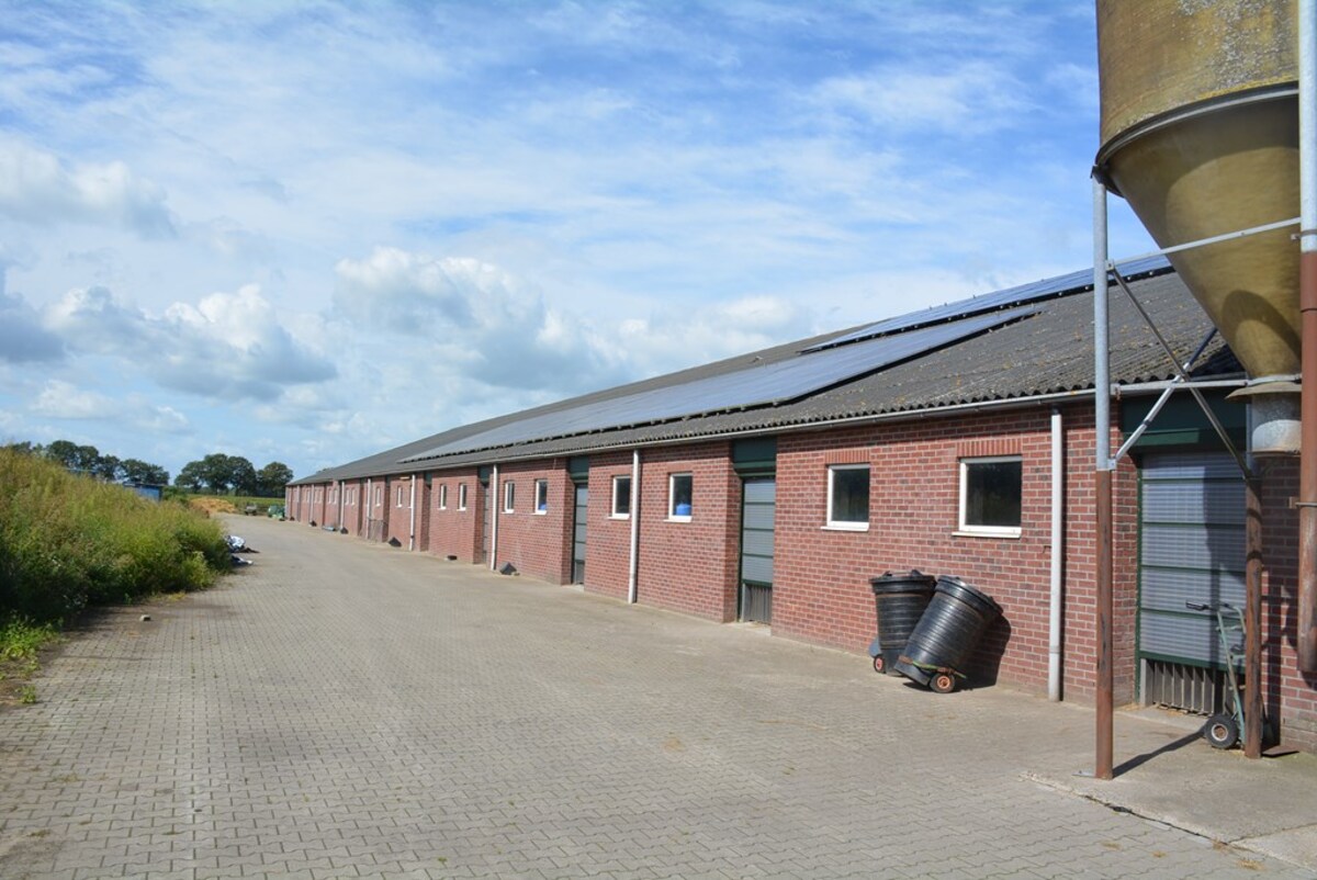 Deze vleeskalverenstal met een afmeting van ca. 30 m x 100 m is gebouwd in 2008. Het geheel is opgetrokken uit betonelementen met steen motief met een stalen spantconstructie en is gedekt met asbestvrije golfplaten. De kap is geïsoleerd met aluminium met glaswol en de ventilatie geschiedt mechanisch. De stal is ingericht met 3 afdelingen voor de huisvesting van in totaal 900 startkalveren op 1,5 m2 maar ook geschikt voor 720 witvleeskalveren op 1,8 m2: voorzien van rvs hekwerk, hardhouten roosters, baby-boxen, troggen met rvs, vloer- en ruimteverwarming. Voedering via een mengwagen. De voerkeuken is voorzien van een melkpomp, een aanmaakmenger van 700 liter, een voorraad menger van 1.500 liter, een voorraad vat warm water 3.000 liter en koud water vat 1000 liter, een klimaat- en frequentieregelaar en een bmax houtkachel van 300kW (2020) e.d. Er is een eigen water-installatie van Ramondis met ontijzering (2014). Verder bevindt er zich nog een ruime voormalige bovenwoning, een kantoor en een toilet