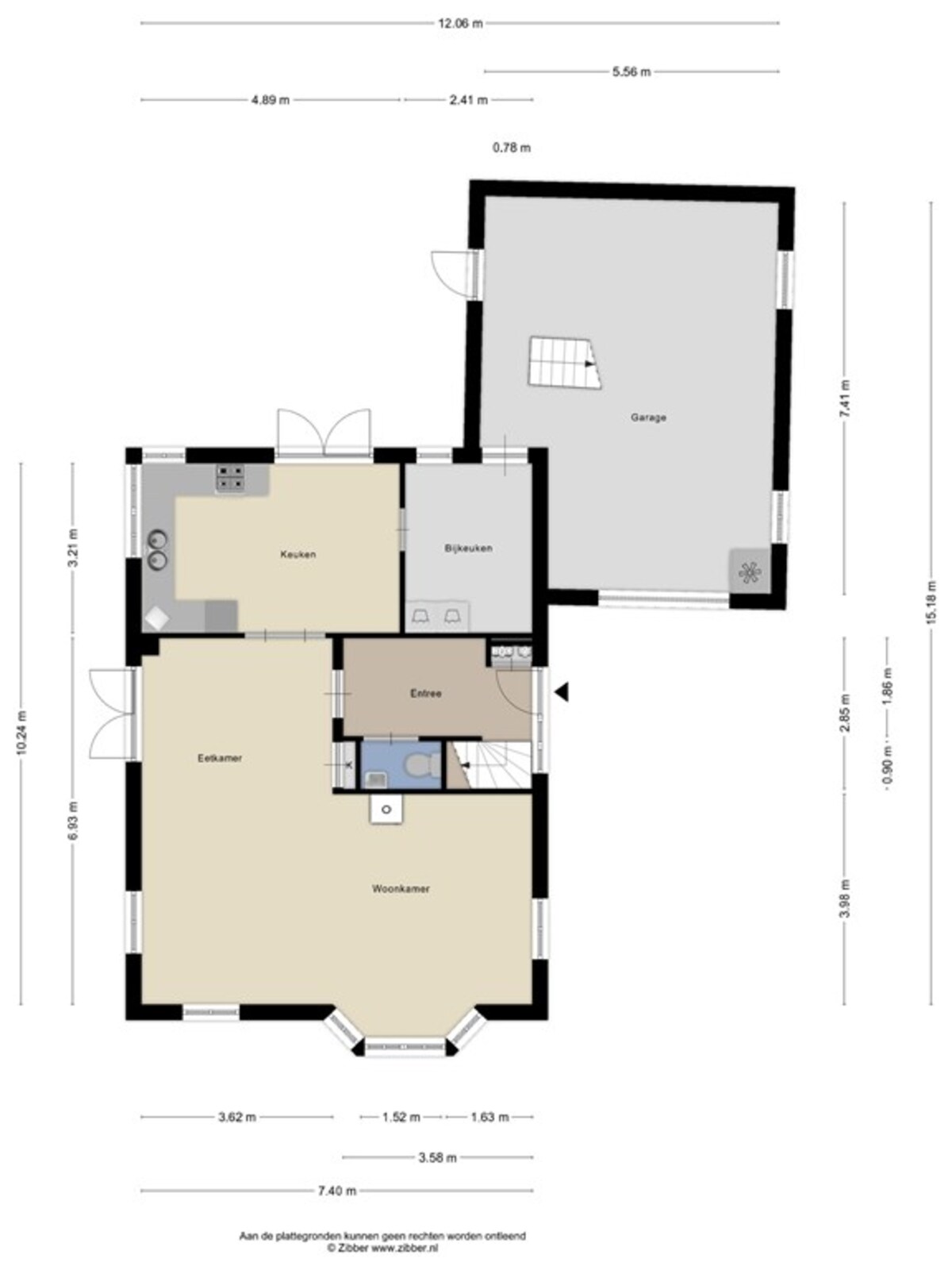 Op de begane grond treft u de entree met toegang tot de woon-/ eetkamer. De woonkamer is voorzien van een houten vloer, een erker en openslaande deuren naar het terras. Er is mogelijkheid voor het plaatsen van een houtkachel. De huidige spekstenen kachel biedt men ter overname aan. Aangrenzend treft u de keuken en de bijkeuken. De bijkeuken, voorzien van CV en aansluitpunten voor wasmachine en droger, heeft een achter entree en directe toegang tot de garage.