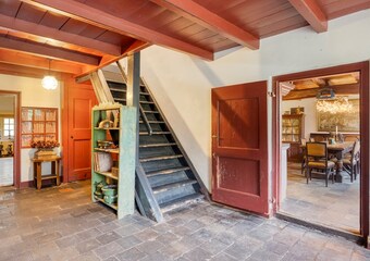 De statige T-boerderij ademt historie. De boerderij heeft een achterhuis, de oude deel, waar de originele gebinten nog aanwezig zijn.