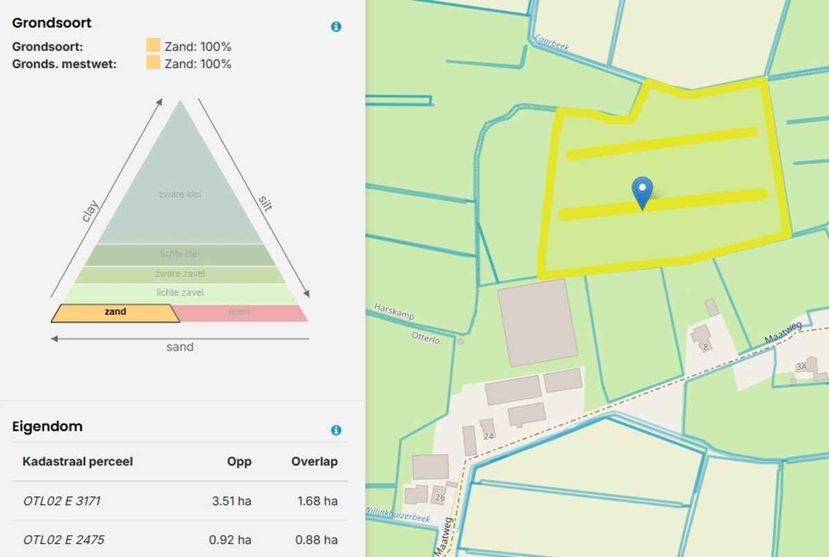 De kavel is de afgelopen jaren in gebruik geweest als akkerbouwland voor de teelt van voornamelijk mais. De ontwatering loopt via sloten. De verkoper is voornemens mais in te zaaien welke in de grond zit vóór levering. Zowel de maisopbrengst als de mestplaatsingsruimte 2026 komen toe aan verkoper.