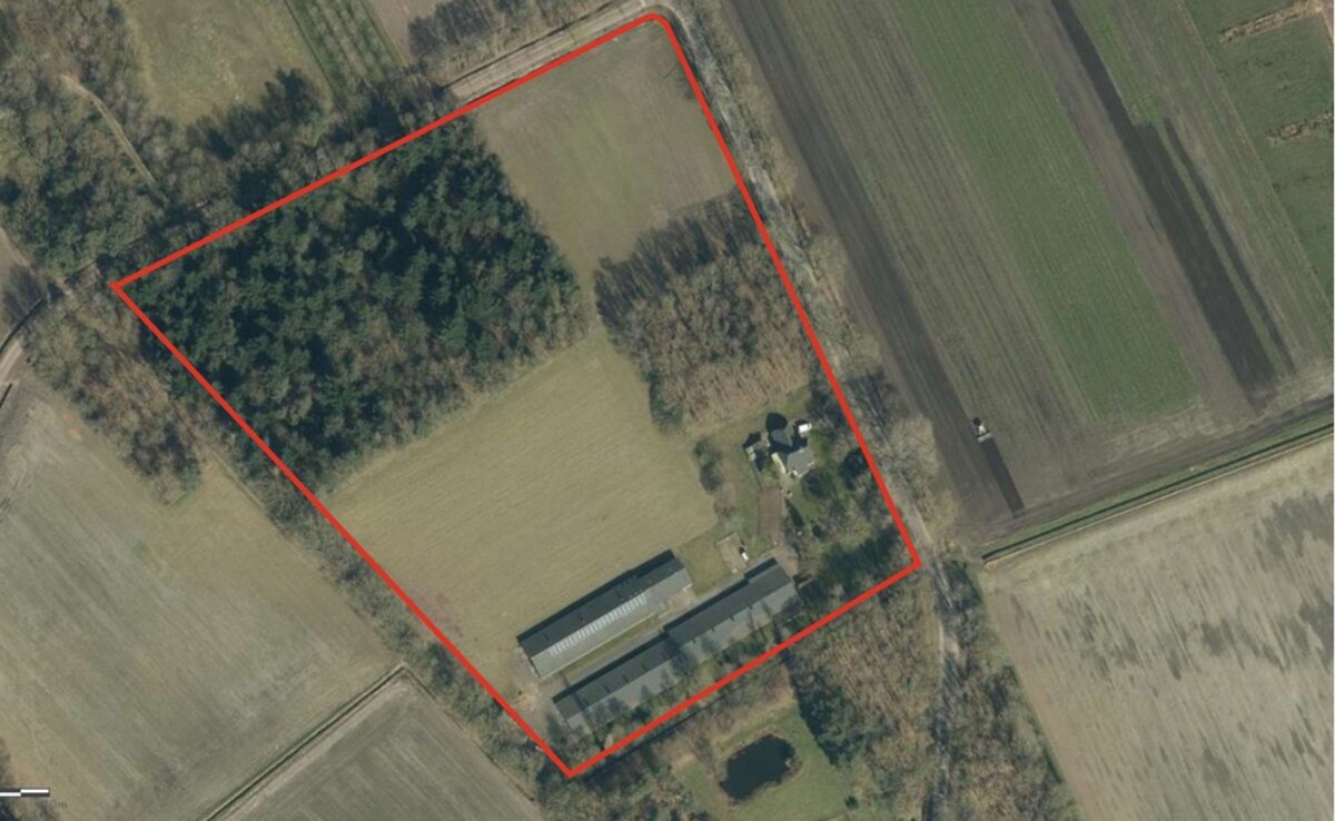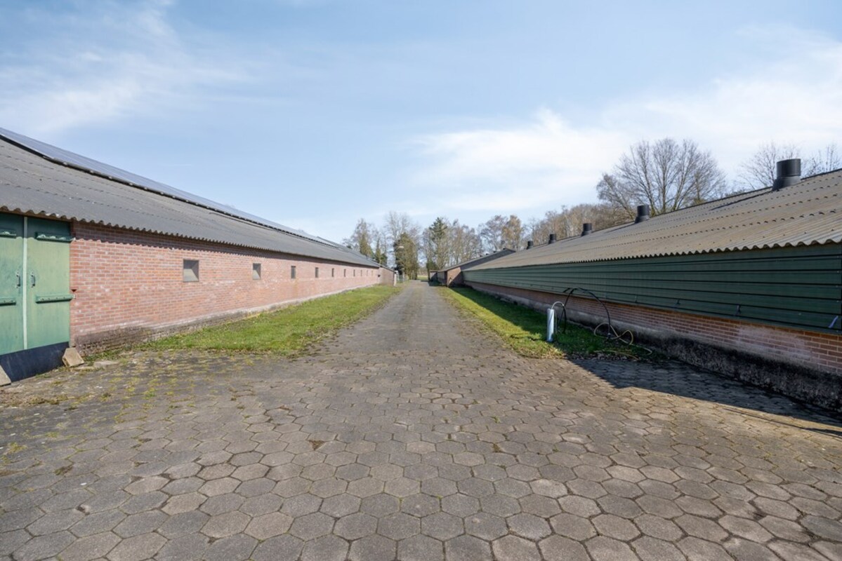 • Twee pluimveestallen met vlakke vloer (ca. 2.000 m²) en open loods