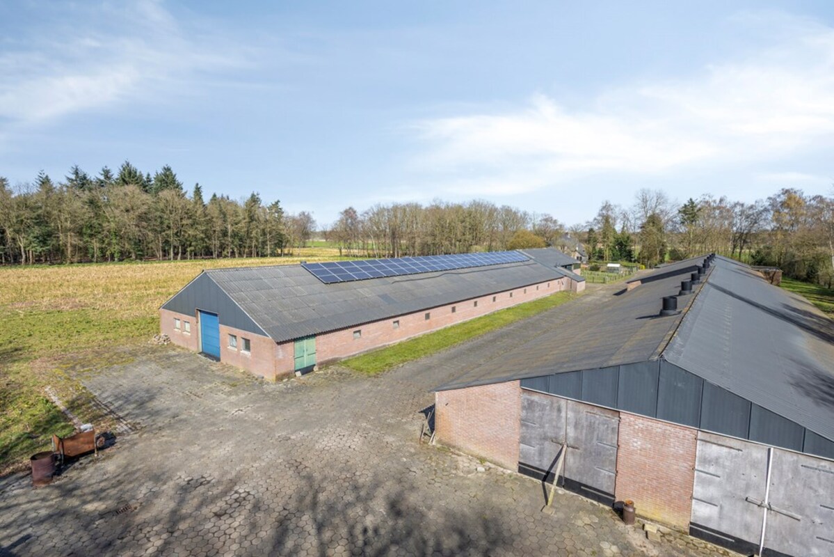 Op ruime afstand van de bedrijfswoning zijn de bedrijfsopstallen gerealiseerd. Beide stallen zijn uitgevoerd met vrije overspanning, spouwisolatie, dakisolatie, vlindervloeren en grote toegangsdeuren. Een van de stallen heeft nog praktische interne werkruimte of kantoorruimte. Tevens is er nog een praktische open loods gerealiseerd.