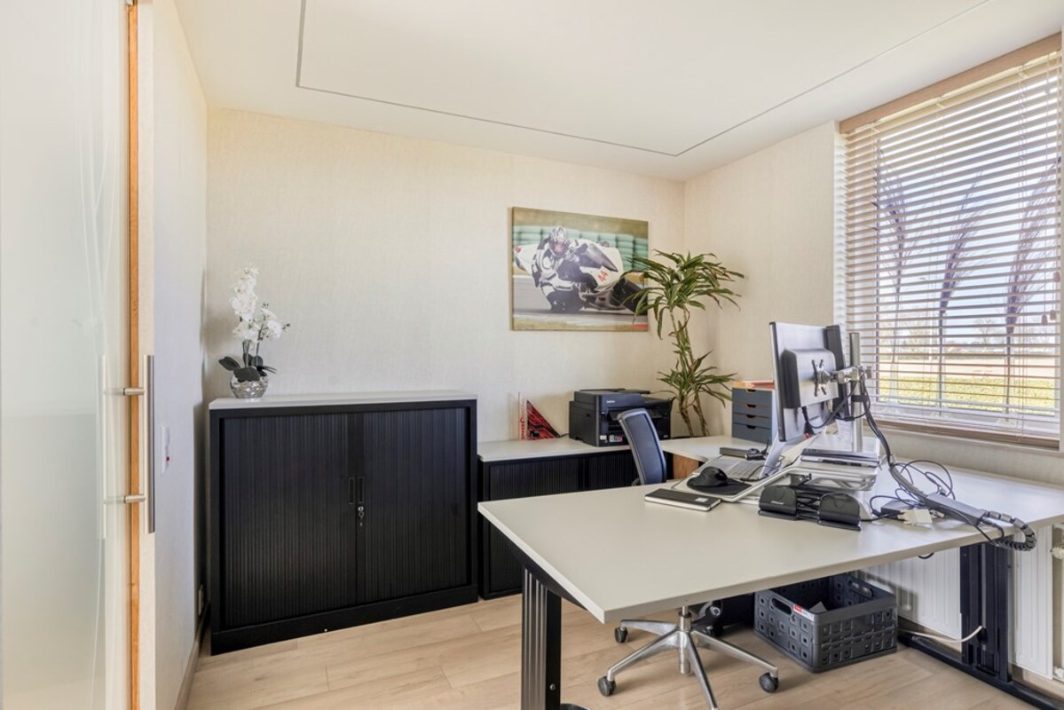 Tevens biedt de hal toegang tot een extra kamer, die ideaal is voor bijvoorbeeld een praktijkruimte, kantoor of hobbykamer. Deze extra kamer is ook direct toegankelijk vanuit de woonkamer.