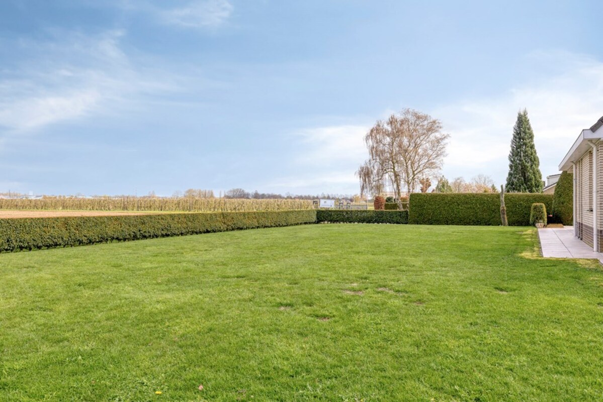 Daarnaast is de tuin volledig uitgerust met een automatische beregeningsinstallatie, zodat hij het hele jaar door moeiteloos groen en verzorgd blijft.
