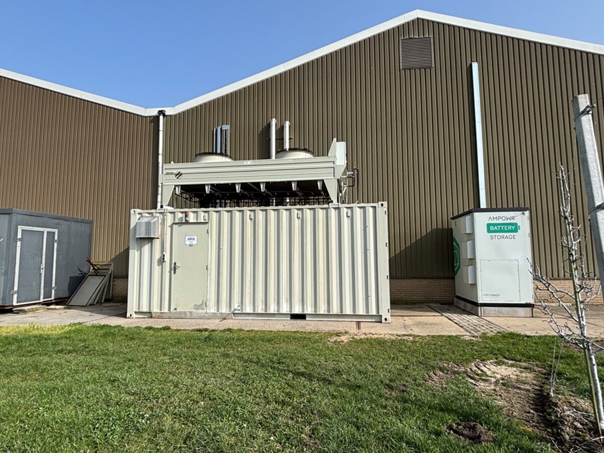 - Batterijopslag (EOS) welke achter de hal is geplaatst; capaciteit 215 kWh en voorzien van omvormer 100 kWh.