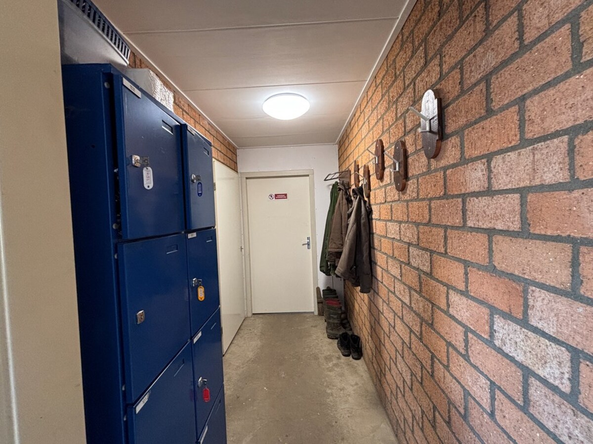 - Voorzijde welke is ingericht met kantine, toilet, opslagruimte voor gewasbeschermingsmiddelen, werkplaats en meterkast. Daarboven een kantoorruimte.