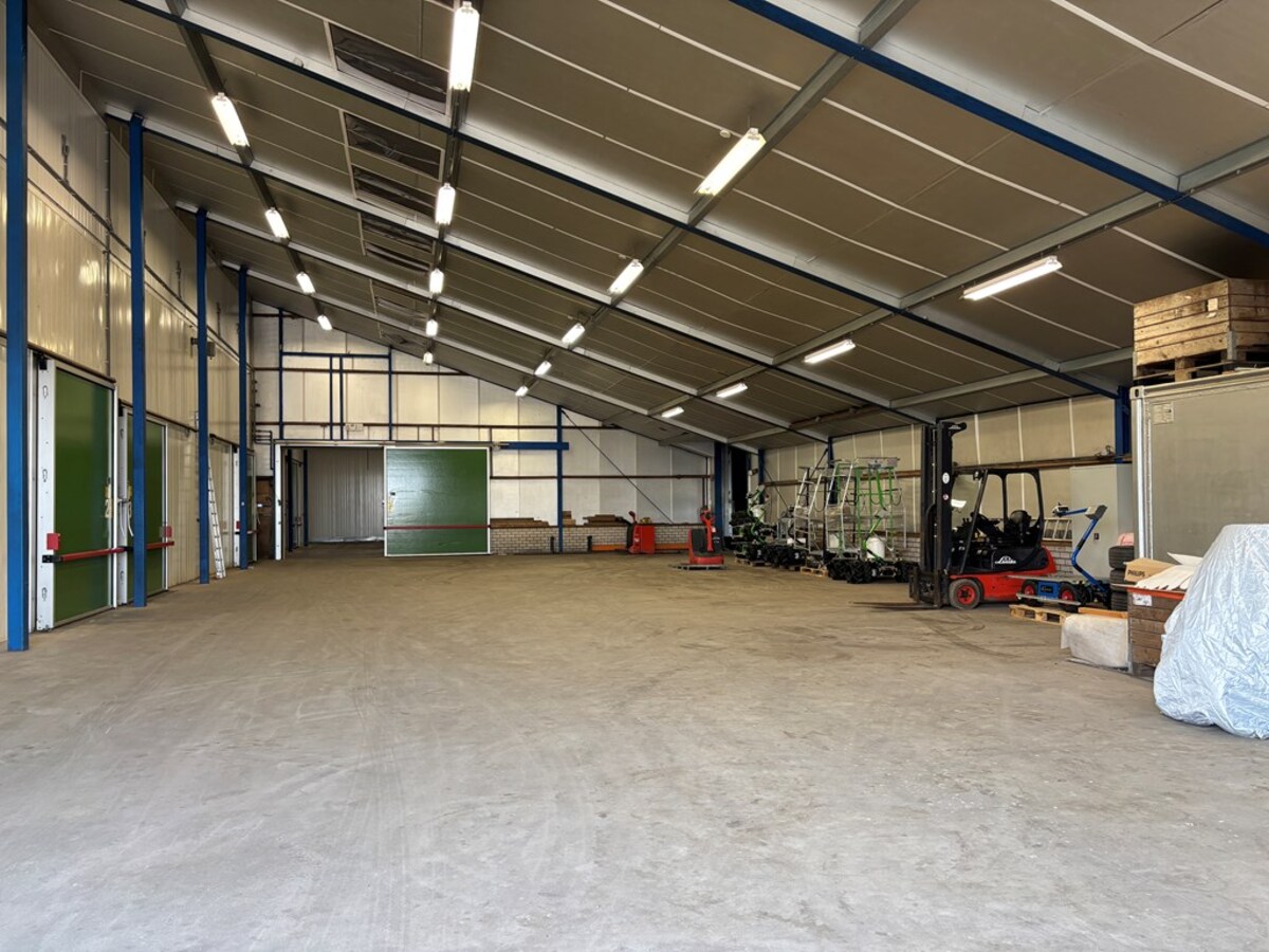 • In 1986 gebouwd, met uitbreiding in 1991 en 1996. Nokhoogte bedraagt ca. 8,80 m, goothoogte bedraagt ca. 3,20 m. Goothoogte (tevens inrijhoogte) aan de oostzijde bedraagt ca. 4,50 m. De oppervlakte (bruto vloeroppervlakte) bedraagt ca. 1.600 m²; waarvan ca. 120 m² is ingericht als overkapping. Betreft een (onderheide) ringfundering met een (deels) geïsoleerde vloer. Het hele dak is in 2021 vervangen door geïsoleerde sandwichpanelen. Voorzien drie elektrische overheaddeuren, waarvan de overheaddeur in de voorgevel een inrijhoogte heeft van circa 4 m, de overige overheaddeuren hebben een inrijhoogte van circa 4,5 m.