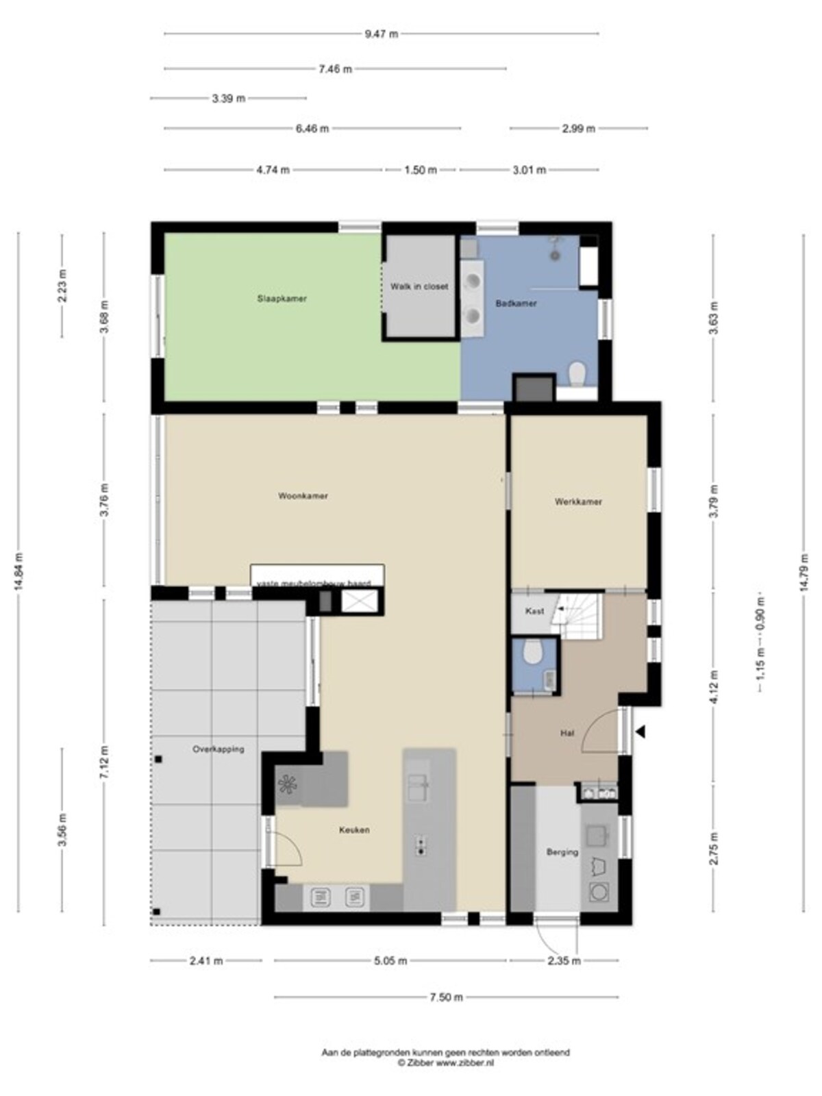 Tevens biedt de hal toegang tot een extra kamer, die ideaal is voor bijvoorbeeld een praktijkruimte, kantoor of hobbykamer. Deze extra kamer is ook direct toegankelijk vanuit de woonkamer.