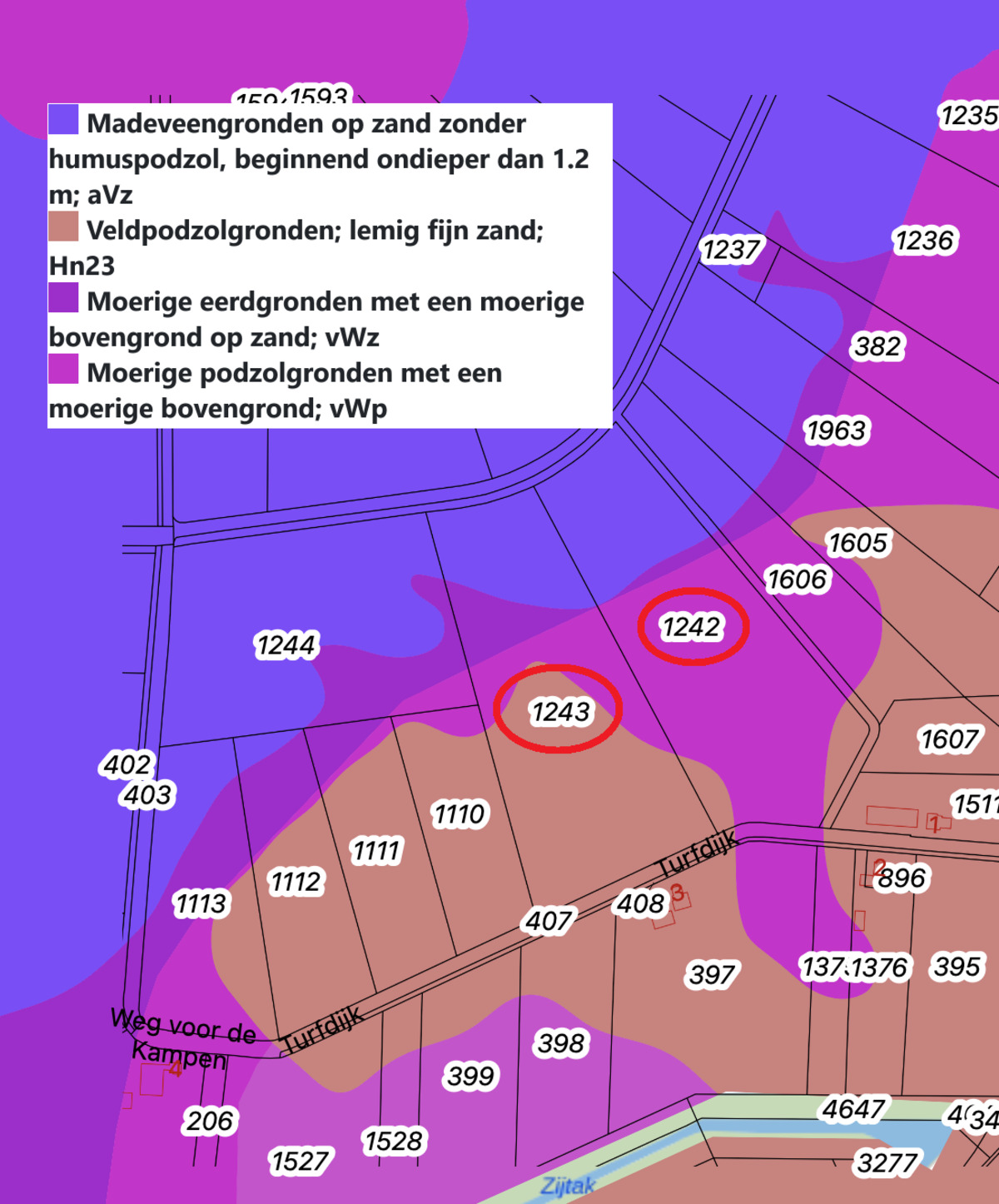 - Moerige eerdgronden met een moerige bovengrond op zand; vWz
