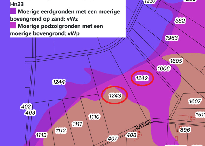 - Moerige podzolgronden met een moerige bovengrond; vWp