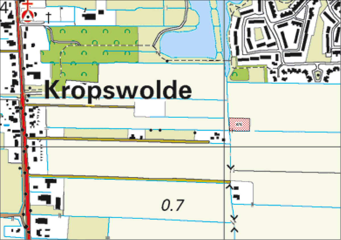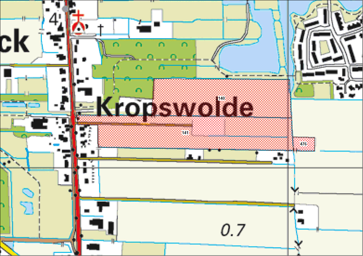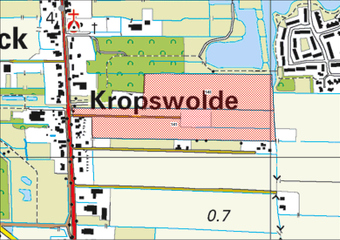 Vrij gelegen bouwkavel aan de Woldweg 145 te Kropswolde met circa 8.25.00 ha omliggende percelen gras-bouwland.