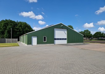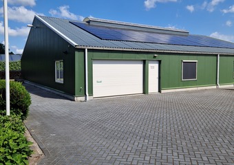 Loods  2011, afmeting 20 x 25 meter, geisoleerd met inpandige kantoorruimte voorzien van 84 zonnepanelen.