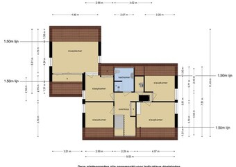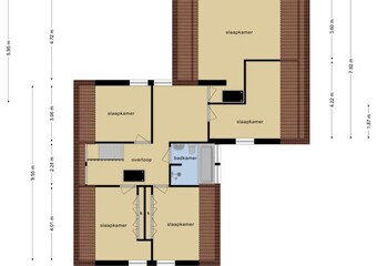 • Indeling verdieping: overloop met vier slaapkamers en badkamer en bergzolder