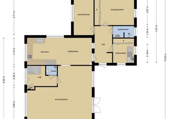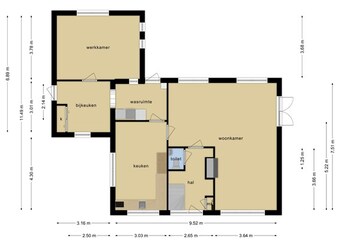 • Indeling begane grond: entree met trapopgang en toilet, woonkamer, woonkeuken, bijkeuken en kantoor.