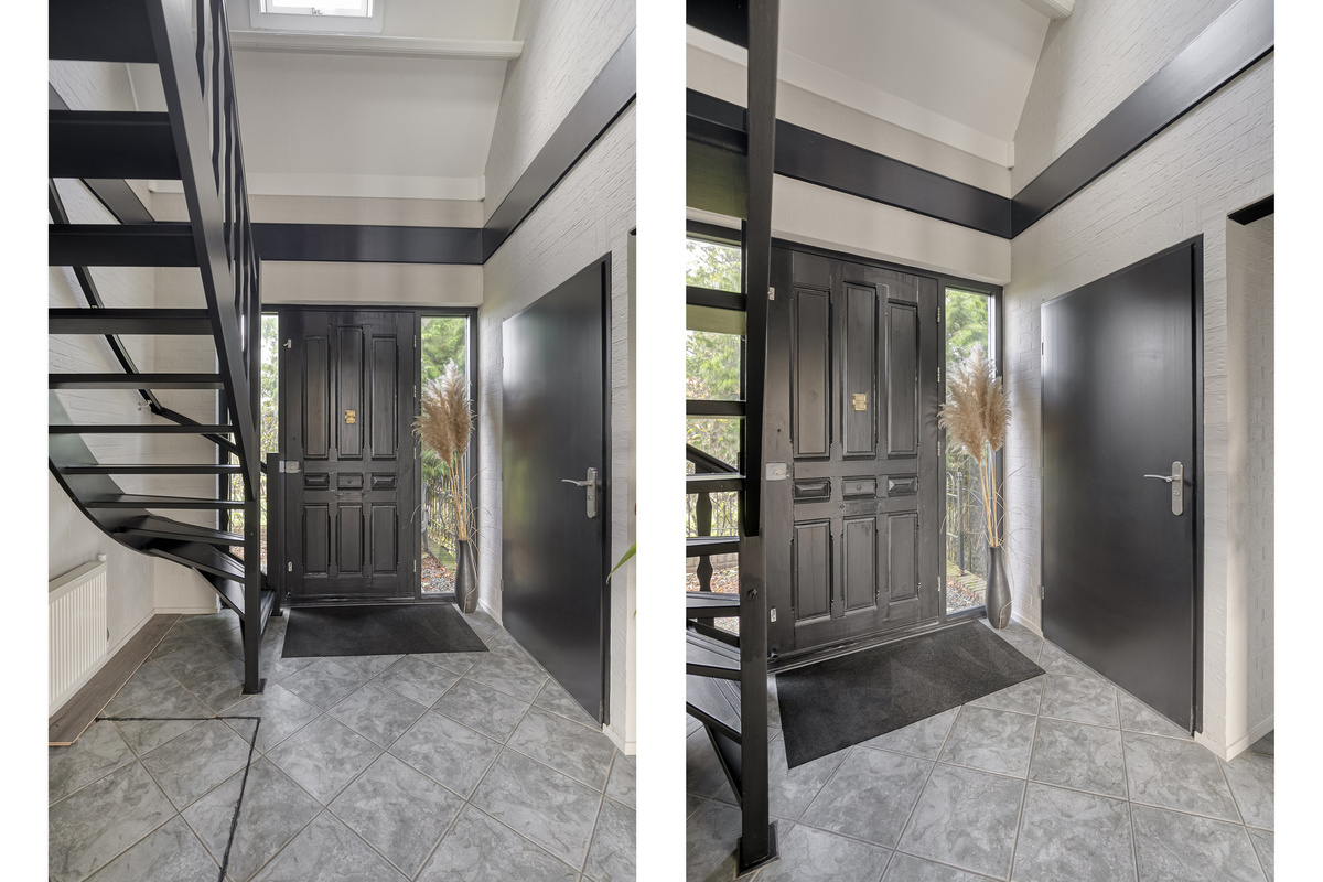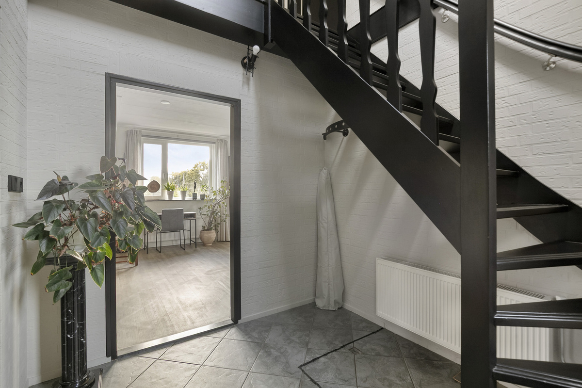 Ruime entree met vide, trap naar de eerste verdieping, meterkast en toilet.