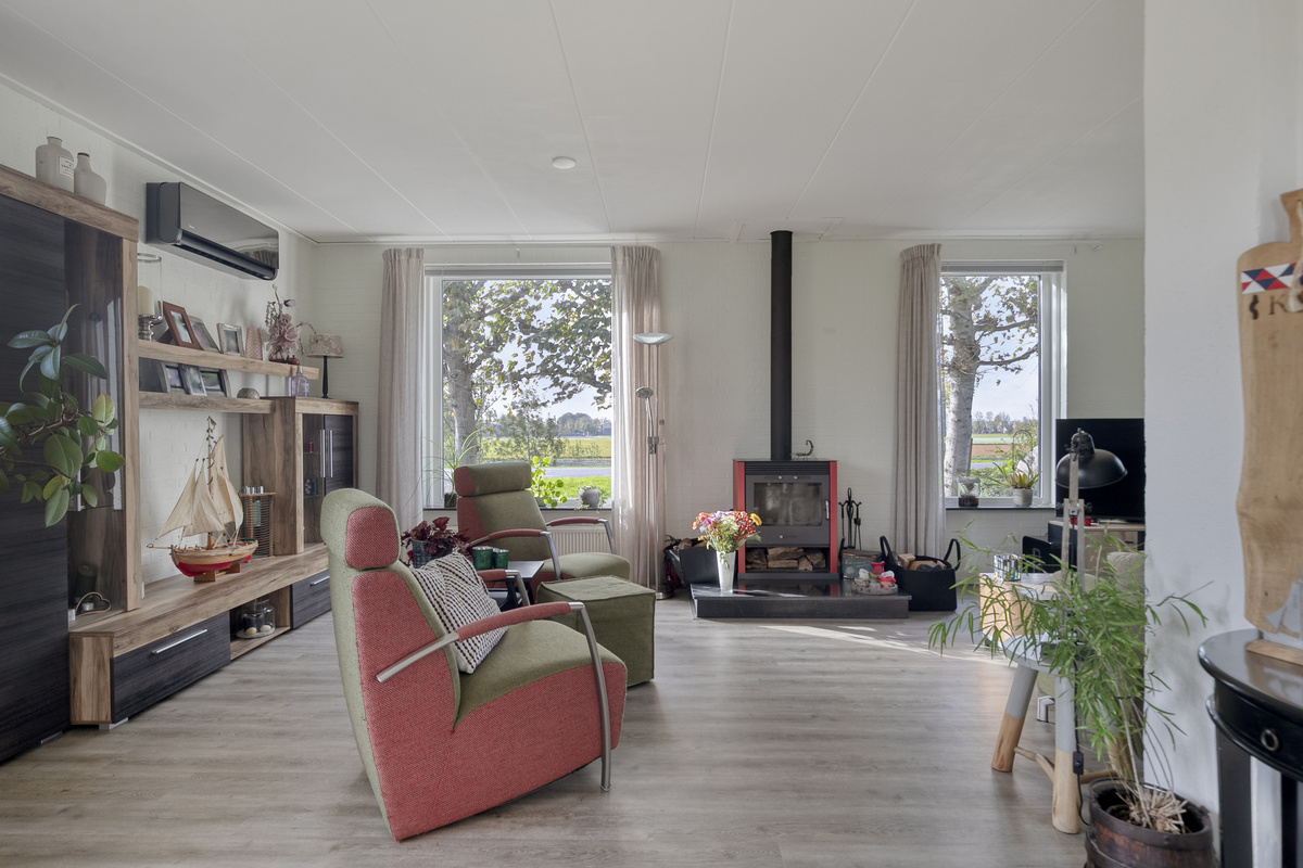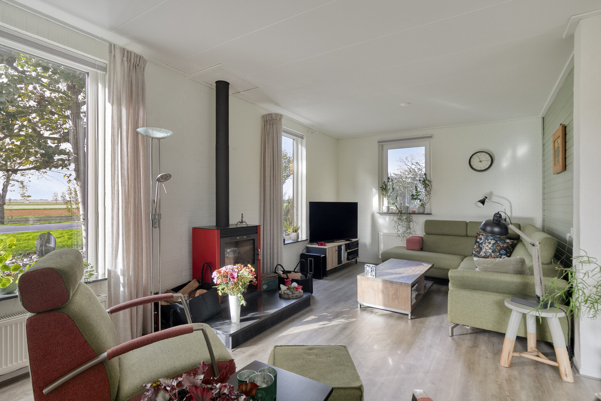 De woonkamer biedt een schitterend vrij uitzicht over de landerijen aan de voorzijde en veel natuurlijk licht.