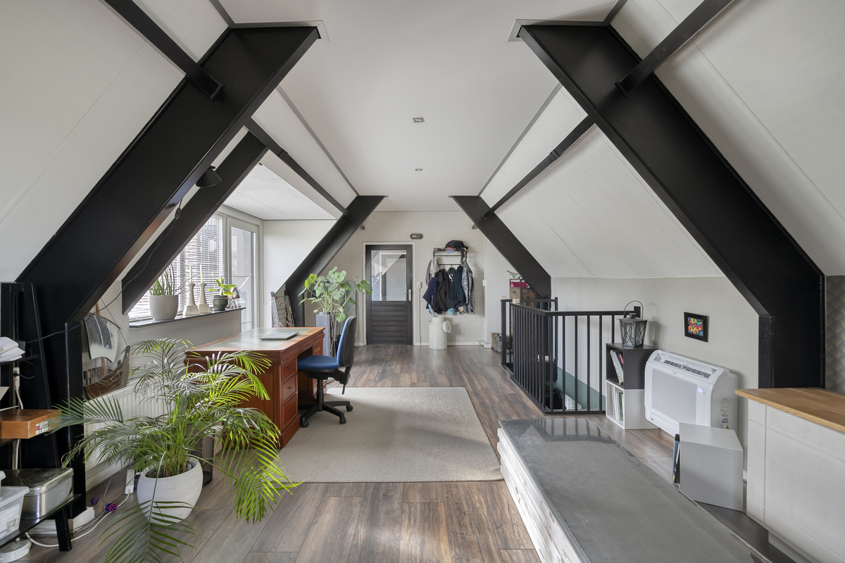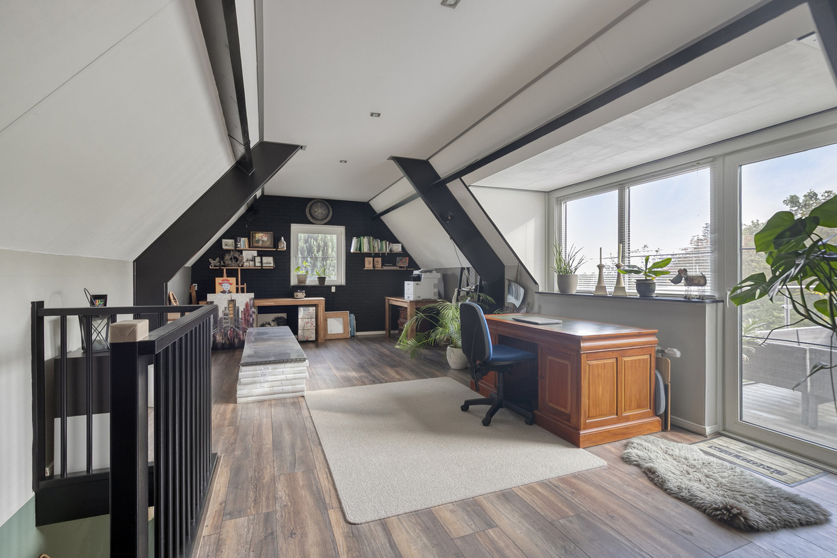 De woonkeuken beschikt over toegang tot het balkon, waar u geniet van het uitzicht over de achterliggende velden. Aangrenzend bevindt zich een ruimte voor kantoor of wellicht wordt het de speelkamer voor de kinderen.