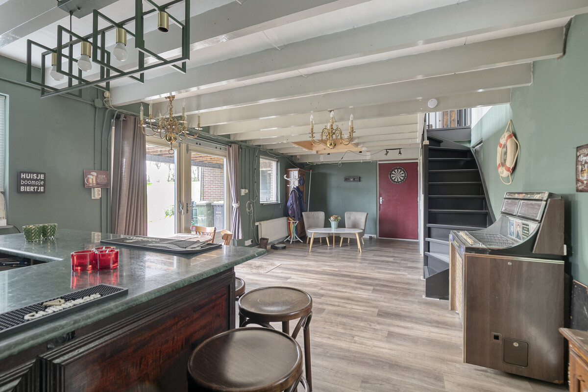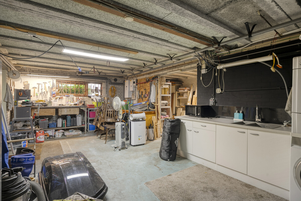 Het souterrain beschikt over een toilet en is ingericht als een stijlvolle mancave – ideaal voor ontspanning, hobby’s of als extra verblijfsruimte. Daarnaast is onder het gehele huis een grote berging/werkplaats.