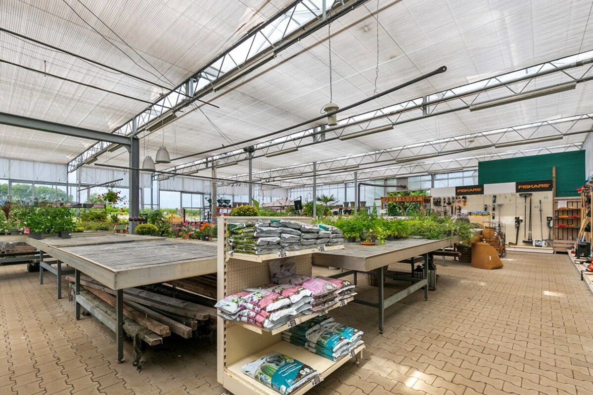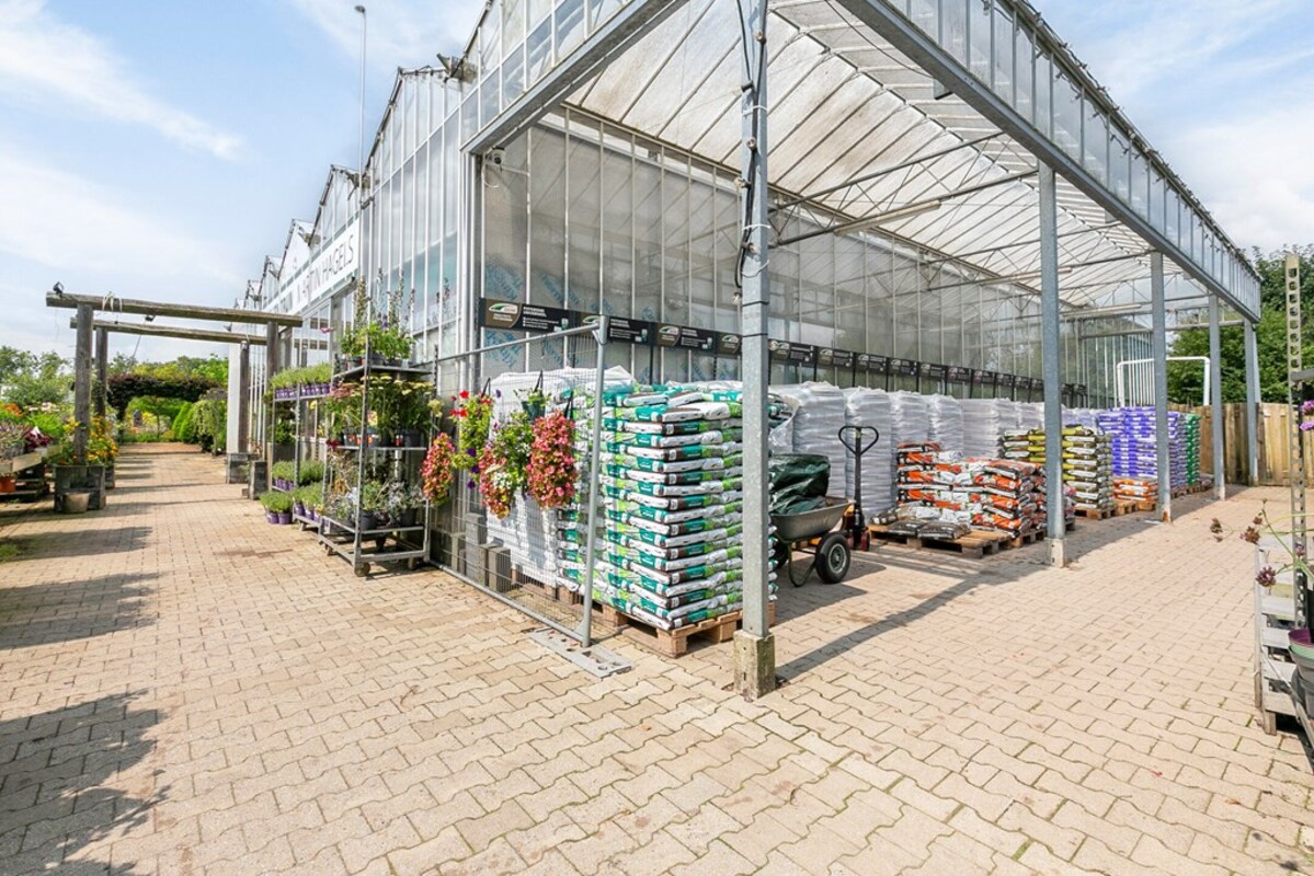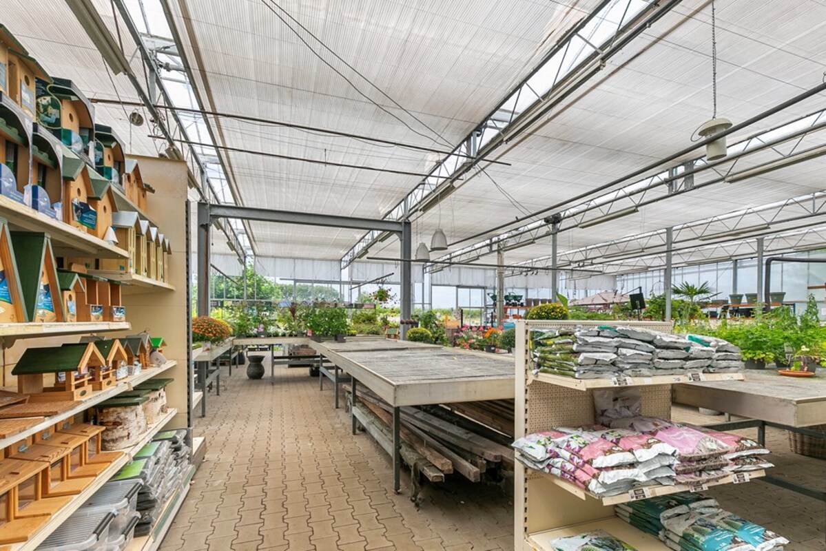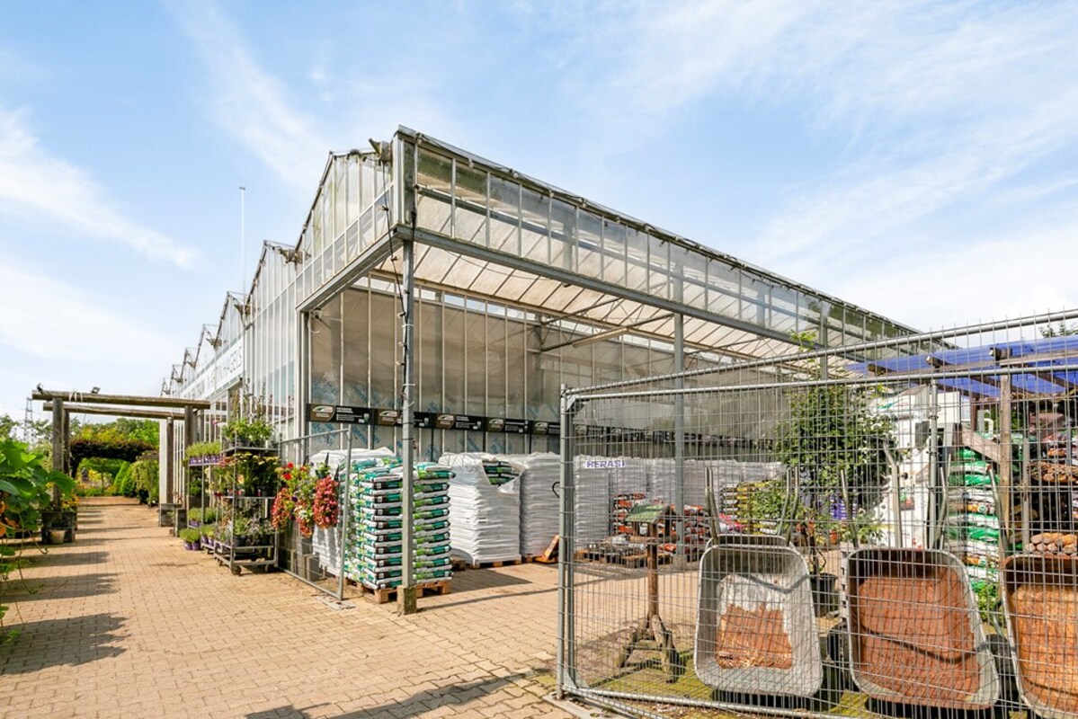 Dit kleinschalig tuincentrum is al jaren gespecialiseerd in de verkoop van tuinplanten, bomen en alle overige benodigdheden. Op het perceel bevindt zich een kas, type Venlo 6 kapper, welke in 2009 is gebouwd. De kas heeft een afmeting van ca. 19,2 m x 24,5 m en heeft dus een oppervlakte van ca. 470 m². Aan de zijkant is een afdak gerealiseerd met een oppervlakte van ca. 51 m². De kas is voorzien van een klinkervloer, 2 houtkachels, verlichting, schermdoek en aansluitingen voor water en elektra. In de kas bevindt zich een kantoor, een verkoopbalie, een pottingbar en een voorraadkast. Naast de kas bevindt zich het waterbassin met een inhoud van ca. 100 m³ voor de buffer van regenwater en eigen grondwater. De waterinstallatie van de eigen bron is uitgerust met een waterzuivering en ontijzeringsinstallatie. In 2020 is een klimaatcomputer geïnstalleerd die de ramen van de kas automatisch bedient. In 2021 is een elektrische pomp aangeschaft voor de handmatige watervoorziening.