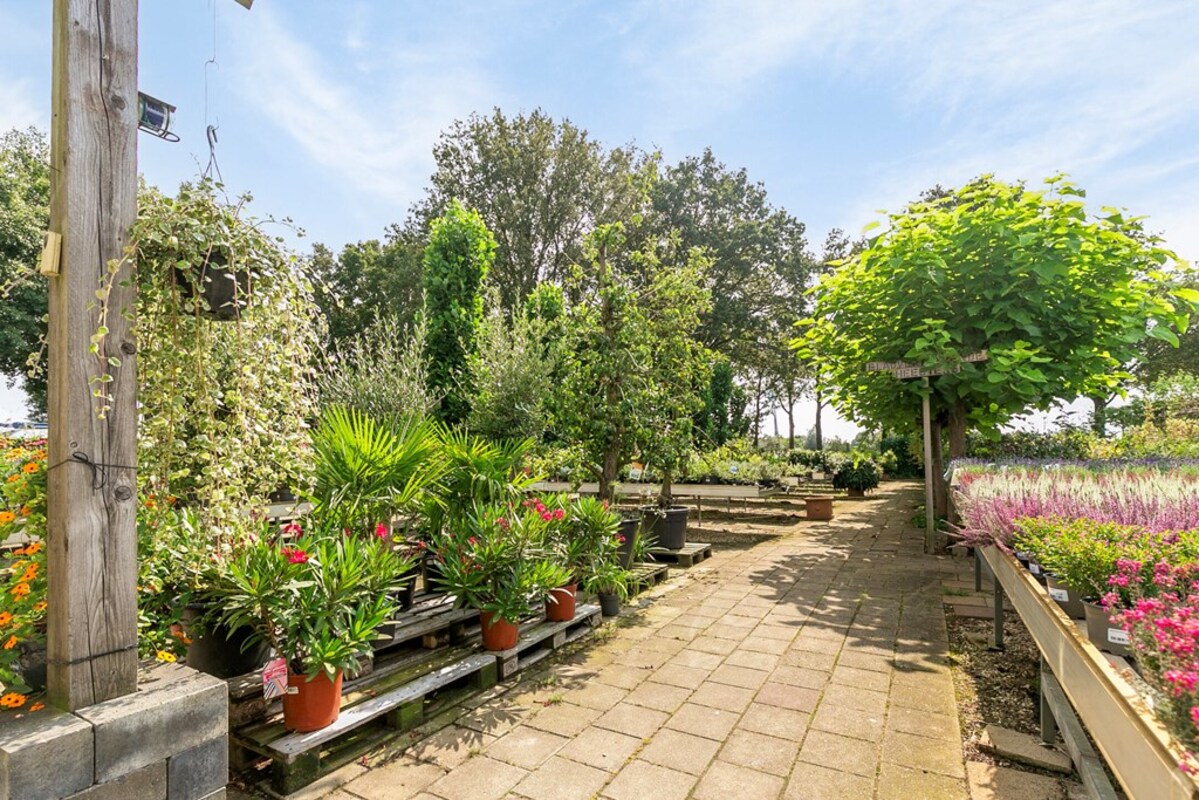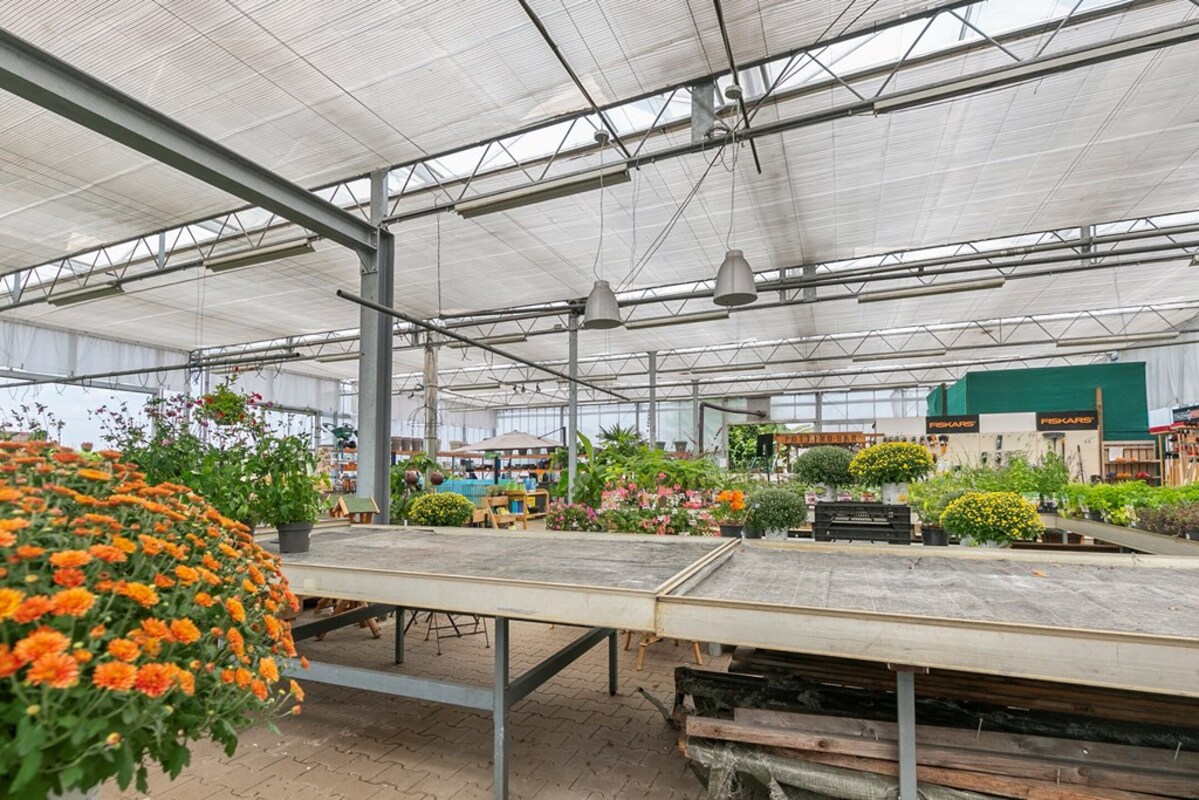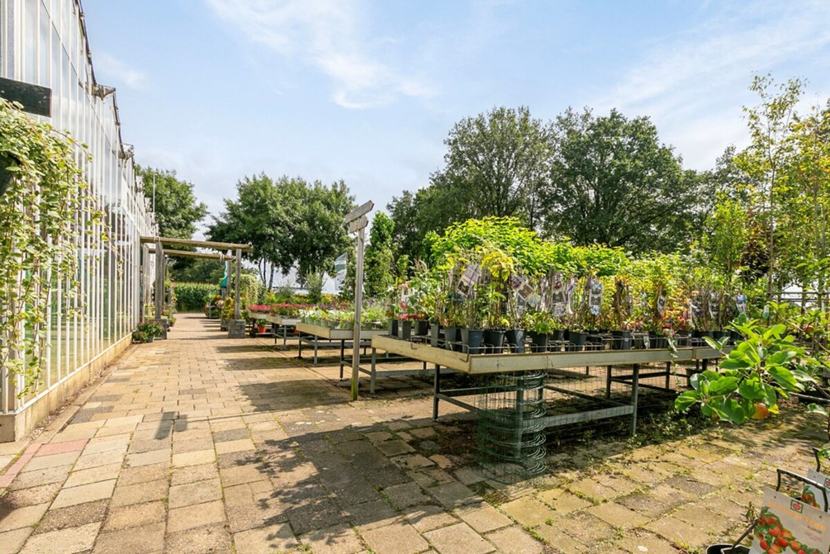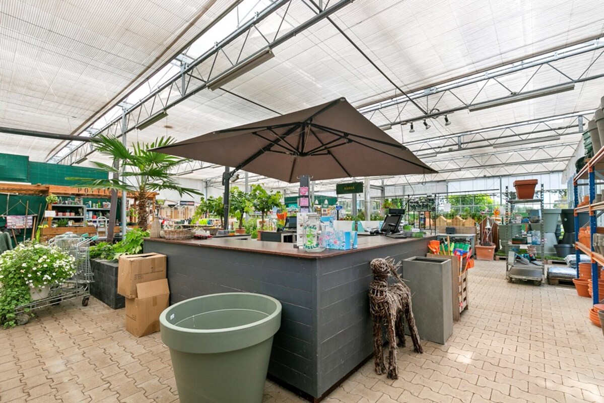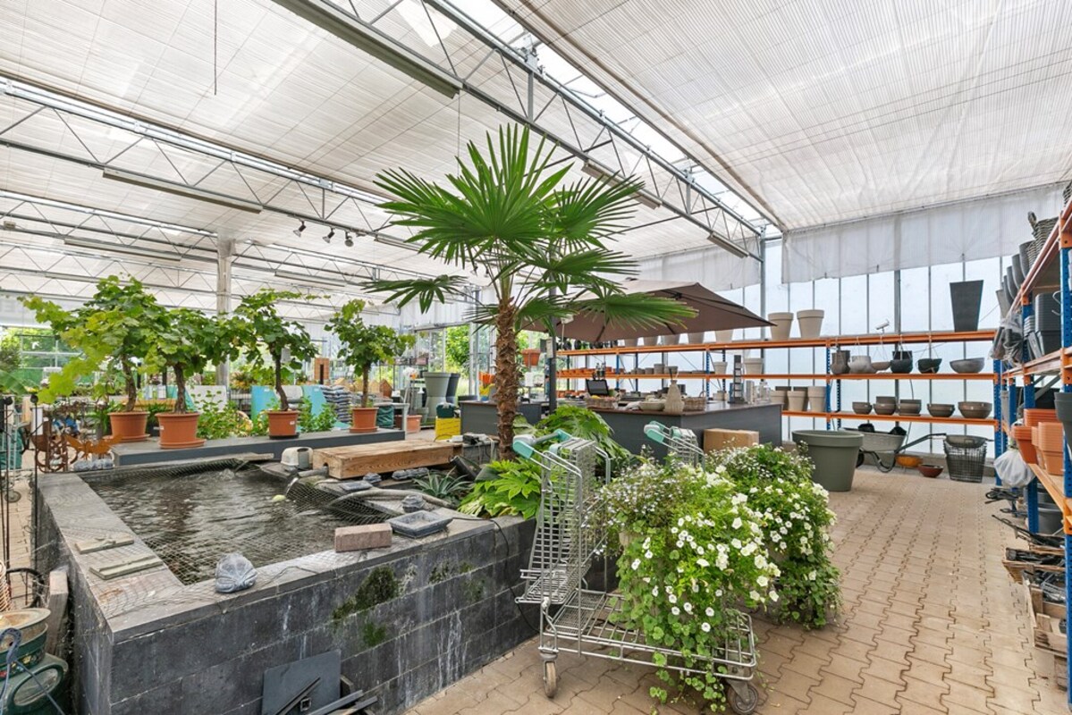 Dit kleinschalig tuincentrum is al jaren gespecialiseerd in de verkoop van tuinplanten, bomen en alle overige benodigdheden. Op het perceel bevindt zich een kas, type Venlo 6 kapper, welke in 2009 is gebouwd. De kas heeft een afmeting van ca. 19,2 m x 24,5 m en heeft dus een oppervlakte van ca. 470 m². Aan de zijkant is een afdak gerealiseerd met een oppervlakte van ca. 51 m². De kas is voorzien van een klinkervloer, 2 houtkachels, verlichting, schermdoek en aansluitingen voor water en elektra. In de kas bevindt zich een kantoor, een verkoopbalie, een pottingbar en een voorraadkast. Naast de kas bevindt zich het waterbassin met een inhoud van ca. 100 m³ voor de buffer van regenwater en eigen grondwater. De waterinstallatie van de eigen bron is uitgerust met een waterzuivering en ontijzeringsinstallatie. In 2020 is een klimaatcomputer geïnstalleerd die de ramen van de kas automatisch bedient. In 2021 is een elektrische pomp aangeschaft voor de handmatige watervoorziening.