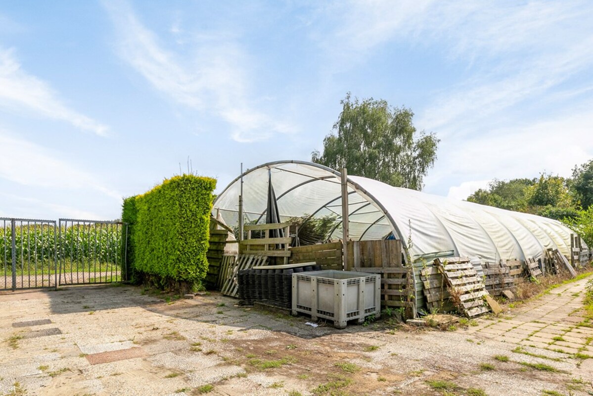 Achter de kas staan 3 verplaatsbare tunnelkassen, 2 van 14 m x 9 m en 1 van 24 m x 9 m. Op 2 van deze kassen zit geen folie meer op. Naast de kas zijn 2 achteringangen voorzien van afsluitbare poorten. Aan de zijkant van de locatie zijn parkeerplaatsen aangelegd.
