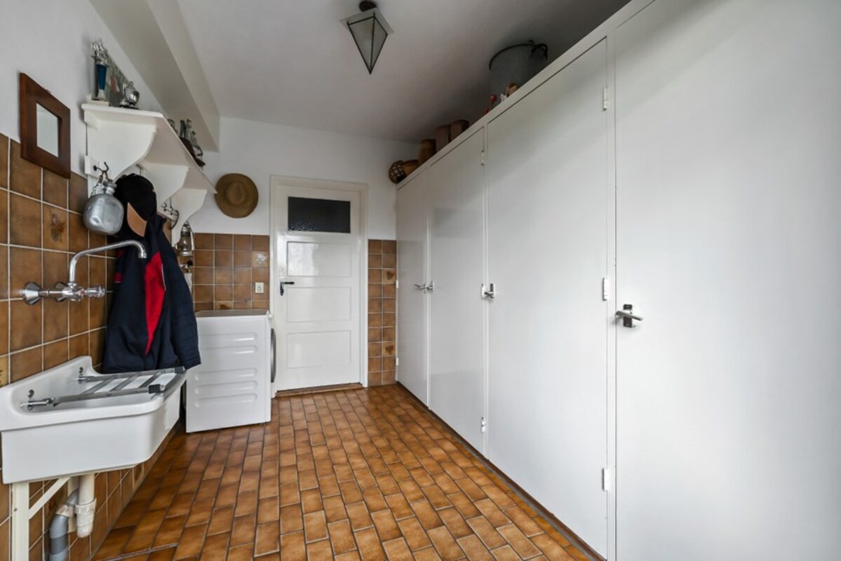 hal, trapopgang, meterkast, toilet, woonkamer met open keuken, bijkeuken, kelder, twee slaapkamers, badkamer met vaste wastafel en douche, berging, hal, toilet, douche, trapopgang, kelder, garage.