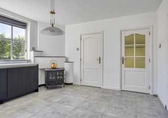 De moderne keuken is volledig uitgerust en van alle gemakken voorzien. Ook in de keuken is een kachel met rookkanaal aanwezig. Vanuit de keuken zijn zowel de gang als de bijkeuken bereikbaar. Achter bij de bijkeuken bevindt zich een extra badkamer, wat extra comfort en veel mogelijkheden voor bewoning biedt. Aan de achterzijde van de woning is een serre aangebouwd. Vanuit deze lichte ruimte heeft u een prachtig uitzicht over de achtergelegen tuin en dierenweide, en is het terras bereikbaar met een kunststof dubbele schuifdeur.