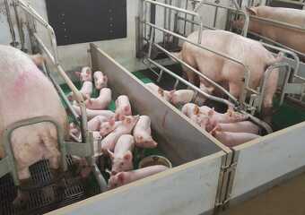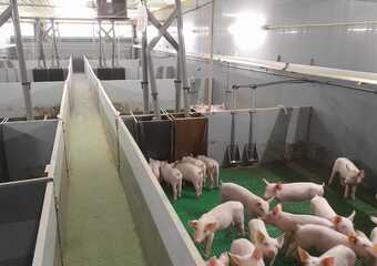 * 5 afdelingen met 75 speenbiggenplaatsen/afdeling, bouwjaar ca. 1988, renovatie ca. 2020;